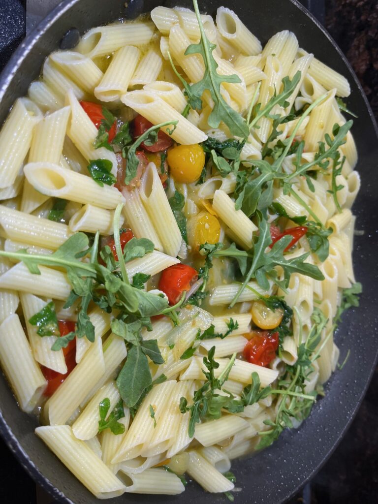 Cherry Tomatoes and Arugula Pasta